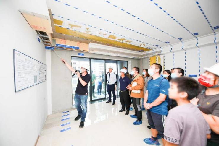 每一个细节,都是大华不断探索舒居空间,深入洞察生活细微,模拟生活场景,深度挖掘隐藏在毫厘间的生活需求,打造榜样级装修的成果,也是锦绣山海一直严格恪守“只造人人心中好宅”的标准,践行工匠精神,筑造真正的生活家园。由工程部经理单勇的带领业主参观放线样板间,对工艺工法及内部装修进度进行详细介绍,品鉴大华探索舒居空间,深入洞察生活场景,挖掘隐藏在毫厘之间的细节,践行工匠精神的真谛。