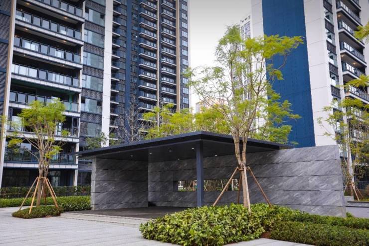 进入社区内部后,简洁的外立面、大面积通透玻璃窗再匹配超大楼间距,使景观视野更优质、日常光照更充足,让人身处其中,无比惬意。
