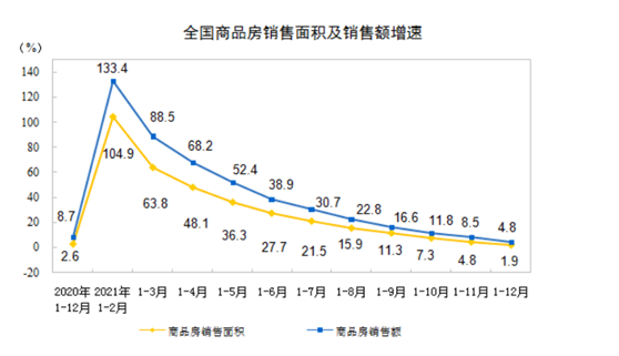 1月17日,国家统计局发布的2021年房地产开发投资数据显示,2021年,全国房地产开发投资同比增长4.4%;全国商品房销售额18.193万亿元,同比增长4.8%。