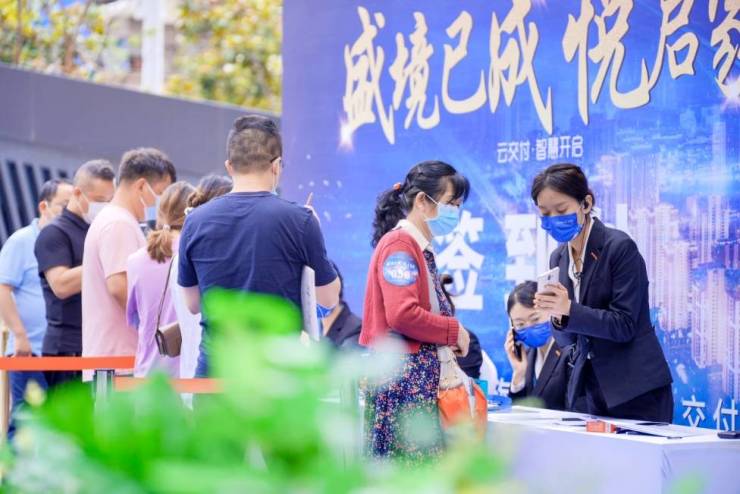 三千时光3期交付当天的签到处,洋溢着业主对自己家的期待。