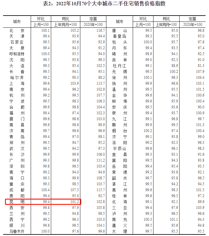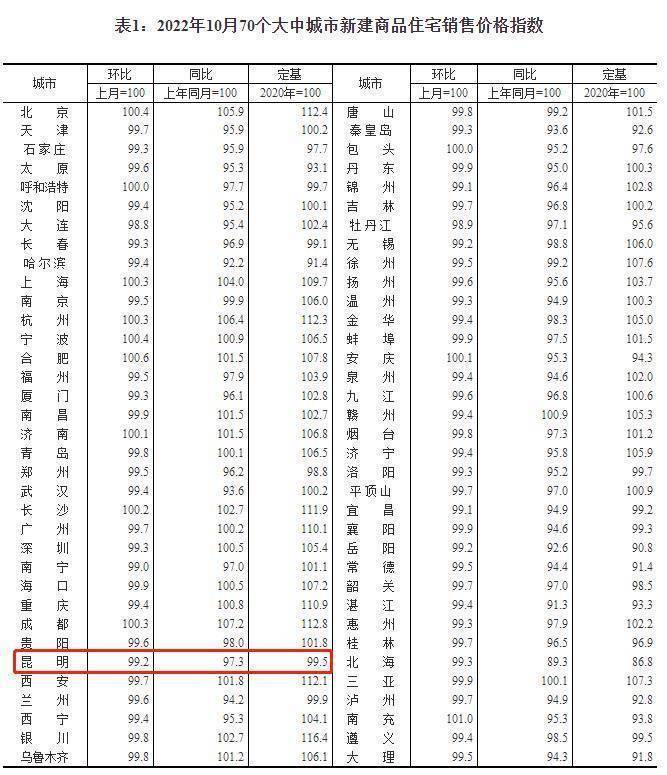10月70城商品住宅销售价格指数出炉,昆明新房环比跌0.8%