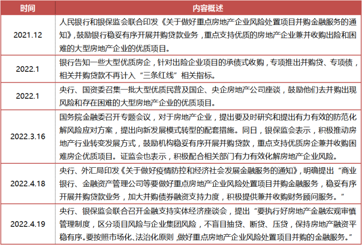 事实上,自去年12月,中央就释放了鼓励优质房地产企业收并购出险房企优质项目的信号,并在金融信贷政策上给予支持。