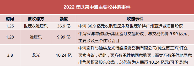 据中物研协统计,央国企对收并购的态度整体较为谨慎,目前并未掀起大范围的并购潮。而中海却多次出手,收购金额近60亿元,引发业内的极高关注。