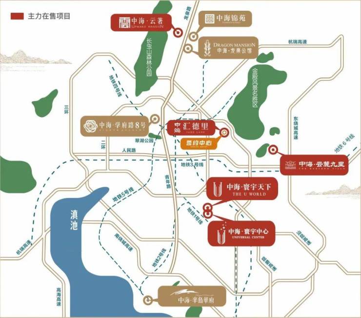 除已交付入住的社区,中海在昆还有中海·寰宇天下、中海·寰宇中心、中海汇德里、中海云麓九里、中海云著五个项目在建在售。