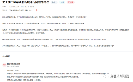 (北市区往西三环方向)从目前昆楚复线接入西三环的施工来看,已经在西三环开设匝道入口,能否借昆楚复线施工之机,同步考虑北市区往西三环方向,接入京昆高速的通道建设呢?
