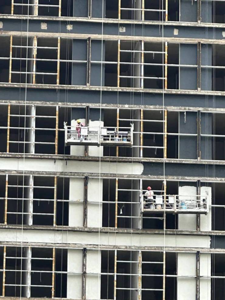 目前1栋正在进行外立面收尾工程,涂料粉刷,2栋正在进行电梯调试验收工作,由于受限于建设资金紧缺的原则,目前项目现场施工人员约30余人。