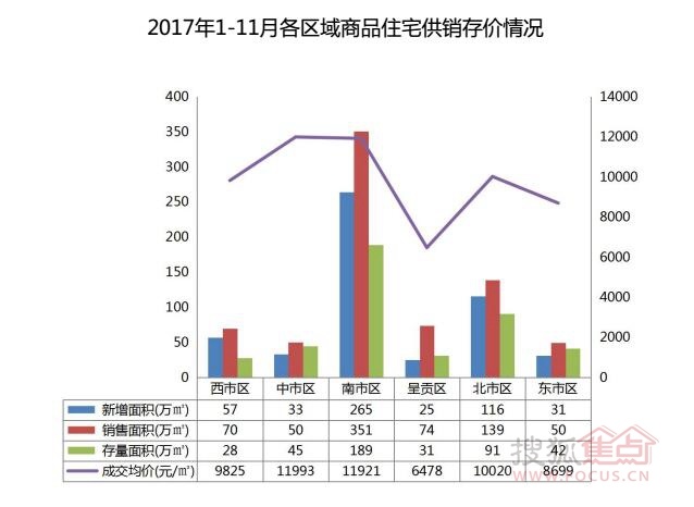 据锐理数据年报显示,2017年最热区域当属南市区,商品房住宅成交量占全市48%,其次为北市区、呈贡。值得一提的是,2017年呈贡新增面积仅25万平方米,全年成交面积达74万平方米。因区域热度只增不减,导致呈贡一度陷入“房荒”,目前呈贡在售住宅项目已不足十个。