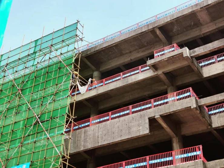 站在项目围挡外,能够听到明显的施工声音,看到不少工人在办公楼上施工。据门口安保人员介绍,自从复工之后,每天都有几十名工人在施工,目前办公楼和住宅楼都在施工中,住宅楼还需要加5层,从现场看,住宅楼处安装了一台塔吊,顶部有施工。安保人员介绍,住宅楼内部也有工人在施工。