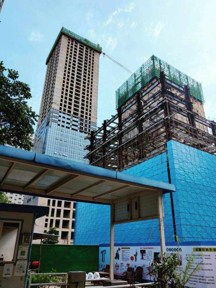 复工两个月后,项目进展如何?7月27日下午,记者来到置地广场,看到工地围挡上张贴了工程概况牌、项目平面布置图等信息,工程概况牌上显示,项目施工单位为天祥建设集团股份有限公司。项目结构层数为办公楼53层、住宅楼49层、裙楼5层和地下4层。竣工时间是2025年12月31日。