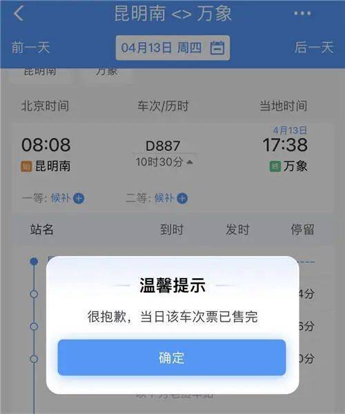 今天(4月11日)上午9时,中老两国铁路部门线上线下同时发售国际旅客列车车票。开票后不久,4月13日首发当日车票均显示暂无余票。