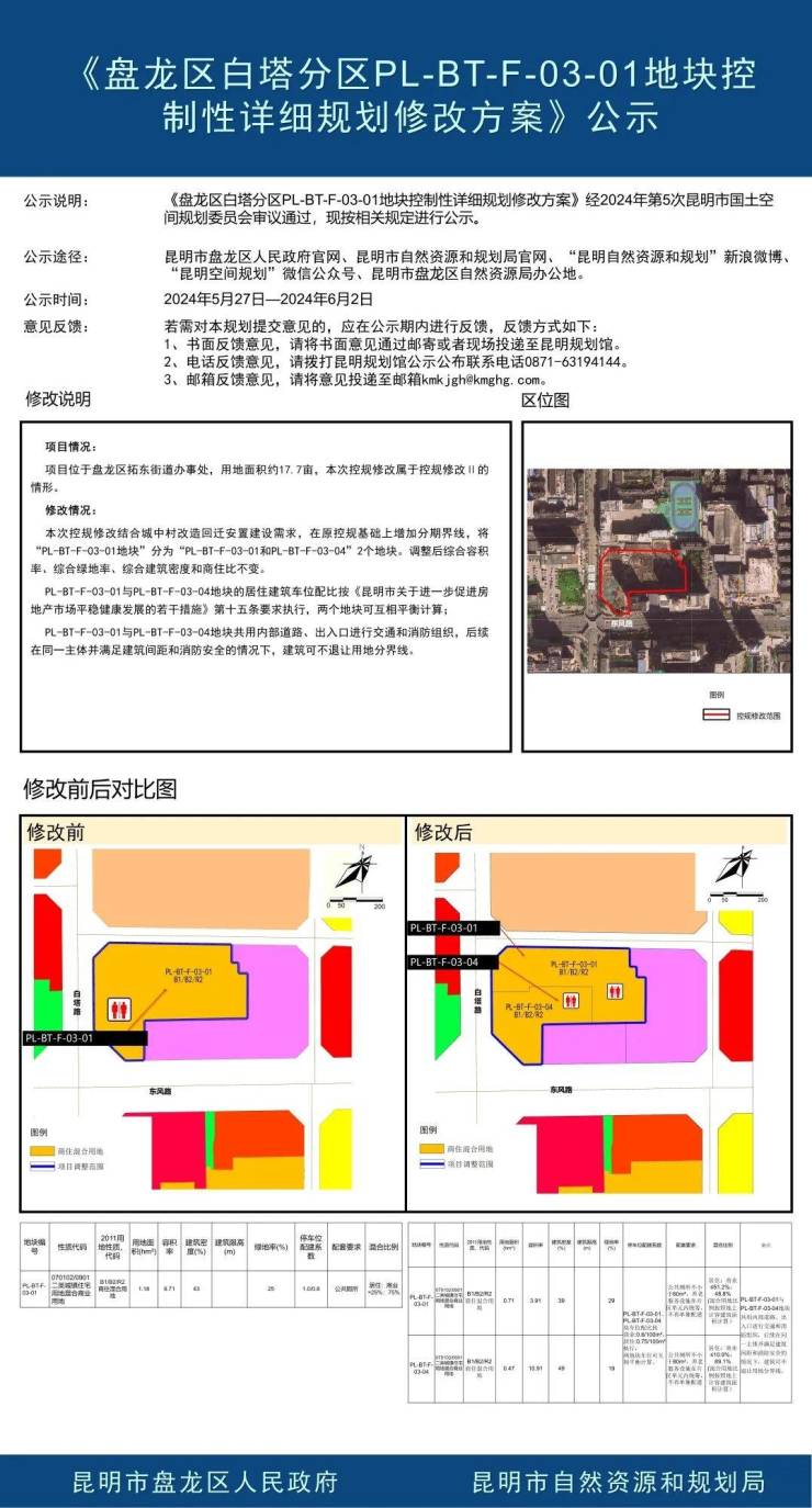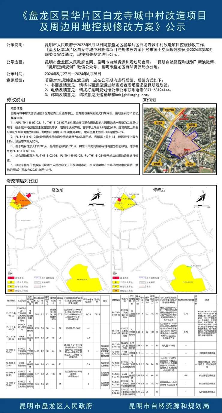 《盘龙区昙华片区白龙寺城中村改造项目及周边用地控规修改方案》公示