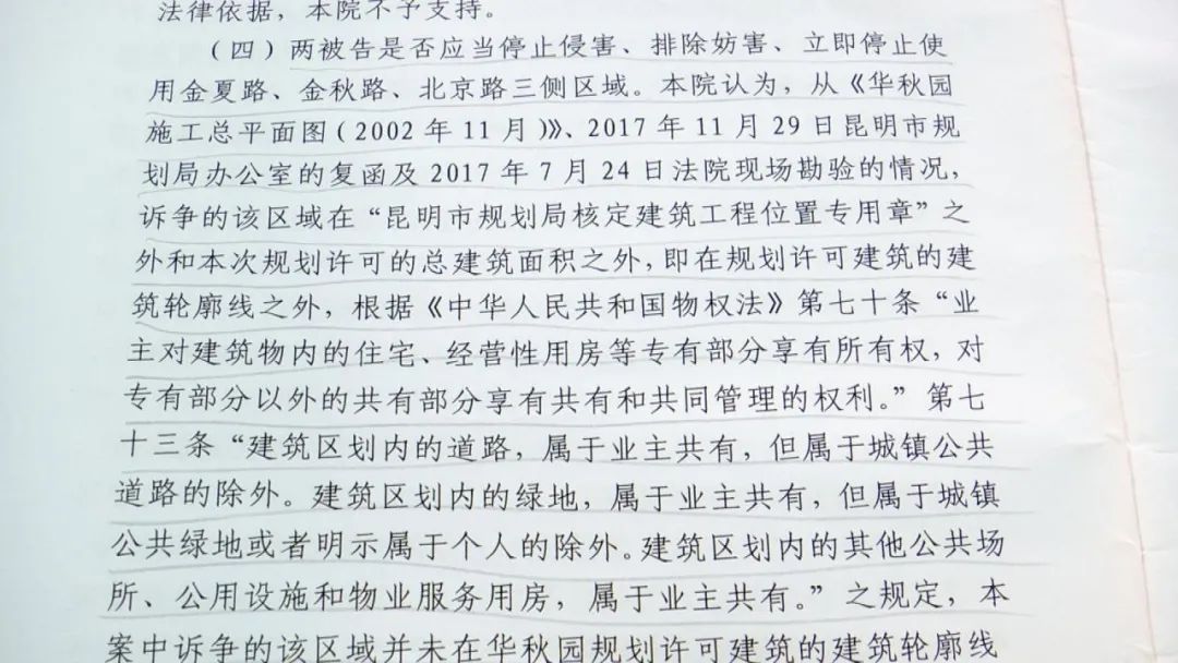 2021年9月,在华秋园业委会和小区业主们的多番努力下,得到了盘龙区自然资源局的回复,回复写明:根据业委会提供的相关文件,经权籍库核实,该小区临北京路方向停车区域在该土地证的证载范围内。小区业委会 杨先生:“目前华诚物业还在收着费,他们平常就是安个地锁,业主包月交费。”记者:“那如果说在那边停的话,不管是临时停还是包月,停车费都是交给原来的那个物管是吧?”小区业委会 杨先生:“对。”