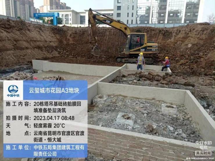 22栋楼基坑土方开挖完成80%;13栋楼塔吊基础浇筑完成;23栋楼与20栋楼一侧负一层地库基坑支护完成65%。