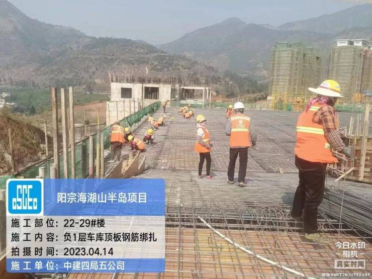 22-29栋负一层顶板钢筋绑扎完成70%,墙柱加固完成;综合楼支架搭设完成,顶板铺设完成;37栋、38栋、39栋屋面防水施工完成。