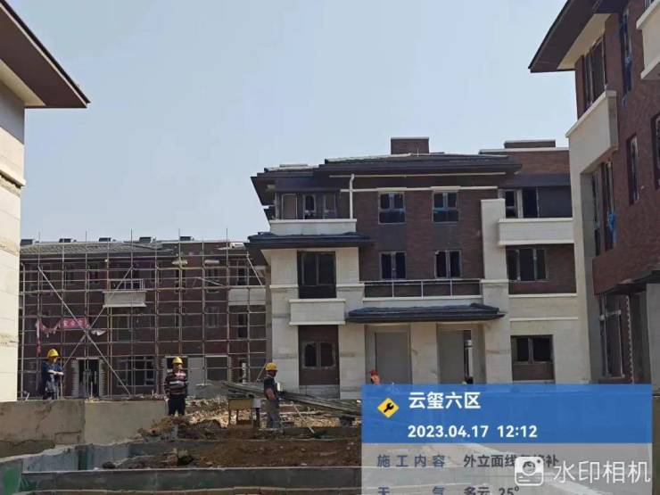 五期:1栋2层及以上外墙腻子完成40%,新增20%,11-12层室内抹灰完成。2栋2层及以上外墙腻子完成20%,新增10%;11-12层室内抹灰完成。3栋外墙抹灰完成(采光井位置除外);11-12层室内抹灰完成。25栋南立面抹灰完成30%;10-12层室内抹灰完成。27栋2层及以上外墙腻子完成20%,新增10%;10-11层室内抹灰完成。28栋2层及以上南立面外墙抹灰完成50%,新增20%;9-10层室内抹灰完成。1栋南侧车库梁钢筋绑扎完成,板底筋绑扎完成。26栋、29栋5-7层砌体完成。