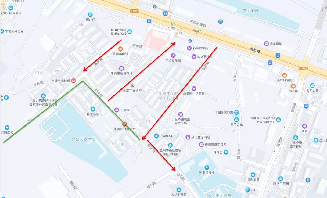 2.德康路行驶方向,南向北单行至贵昆路。