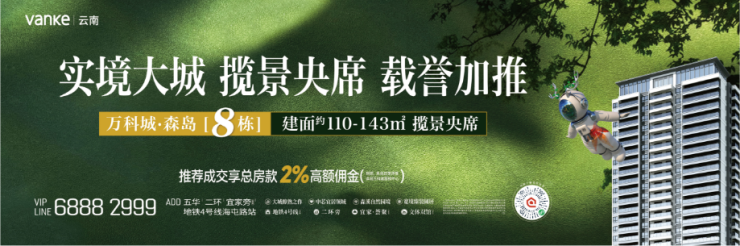 万科城·森岛,8栋揽景央座,全面加推。超100米中庭观景视野,举目俯瞰1.2万方大中庭,咫尺双庭两轴中央主景观,诗意景观在此尽揽。纯板楼格局,约92%高得房率,2梯5户低容积率,加上极致的产品设计与空间拓展,让主城改善置业,在此一步到位。即日起,万科城·森岛推荐成交,即可享总房款2%高额佣金(税前,具体政策详情详询万科城营销中心)。安家万科城最好时机,不容错过。推荐从速,购房从速。