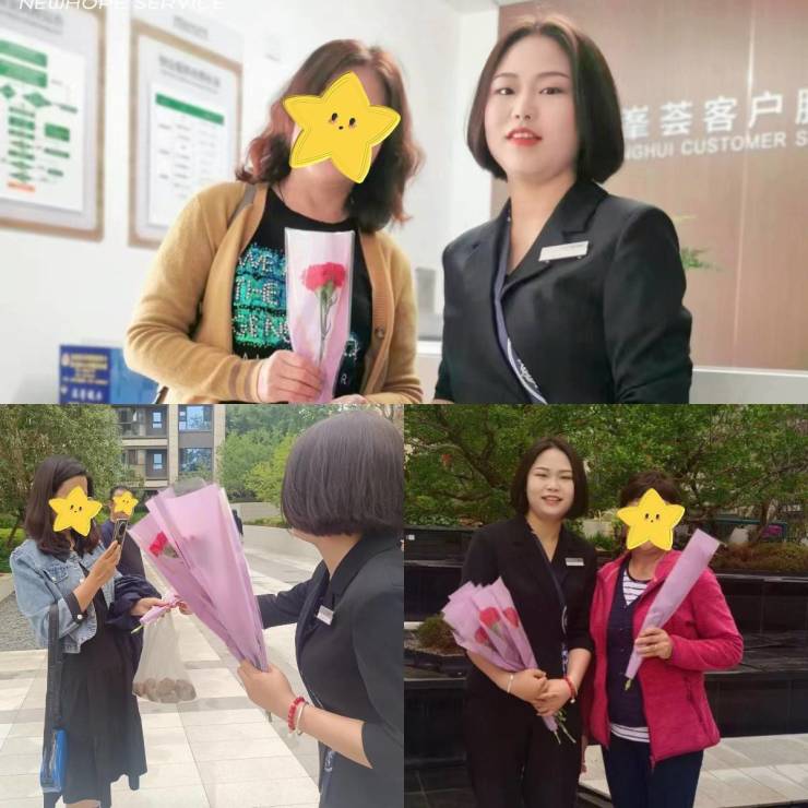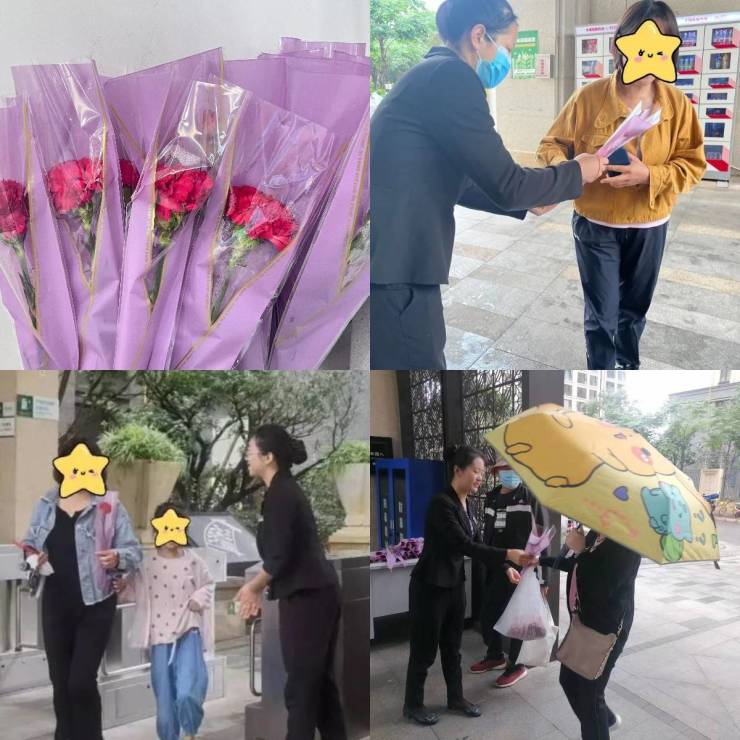 5月14日母亲节当天,在昆明新希望服务的园区里,我们精心为妈妈们准备了康乃馨花束。清晨细雨绵绵,透着丝丝凉意,昆明观澜汇、希望汇、白麓城、锦麟峯荟物业服务中心的工作人员们已早早来到园区,为妈妈们送上清晨的第一份节日惊喜。