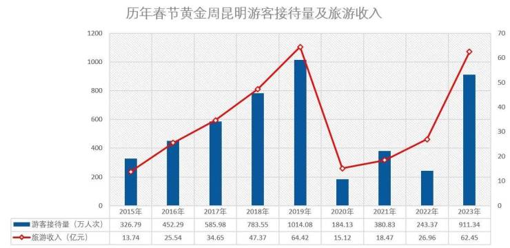 春节期间,昆明市共接待国内游客1368.41万人次,按可比口径同比增长32.93%。四季如春的昆明作为避寒游热门目的地,受到游客欢迎。在春节假期,昆明的旅游比去年增长62%,门票订单同比增长近3倍。