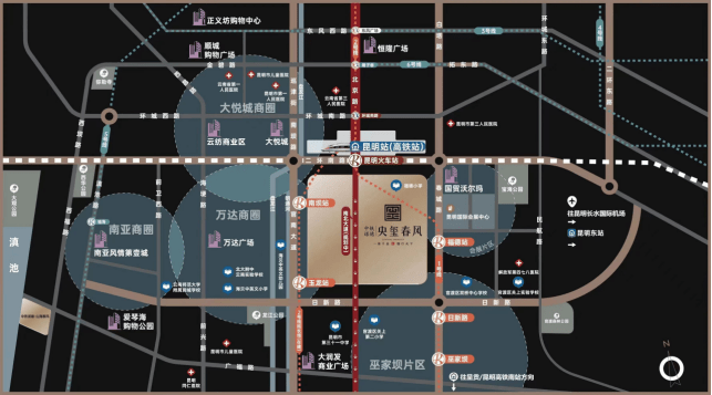 项目周边环绕了南市区重点的高质地商圈,是南市区不可多得的商业资源高地,无论是紧邻的万达,还是3公里范围内的云纺商圈、大悦城、金地中心,南市商圈尽在掌握,放之整个昆明主城都难寻其二。