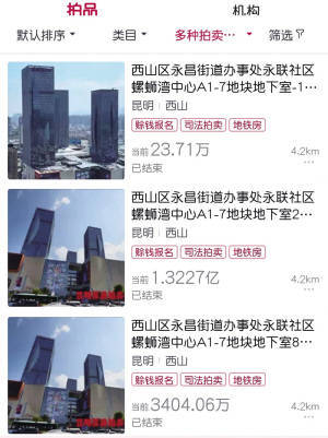 此外,除了此次拍卖的地下商铺外,螺蛳湾中心的大量办公用房也于今年挂出拍卖,记者看到的标的都已流拍。