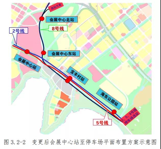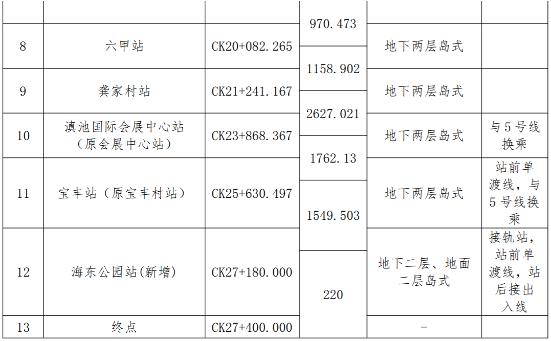 停车场选址调整和增设一座海东公园车站,项目终点由宝丰站延长至新增的海东公园站(渔村停车场),线路增加1.55公里,全长从原来的12.735公里延长至14.285公里。