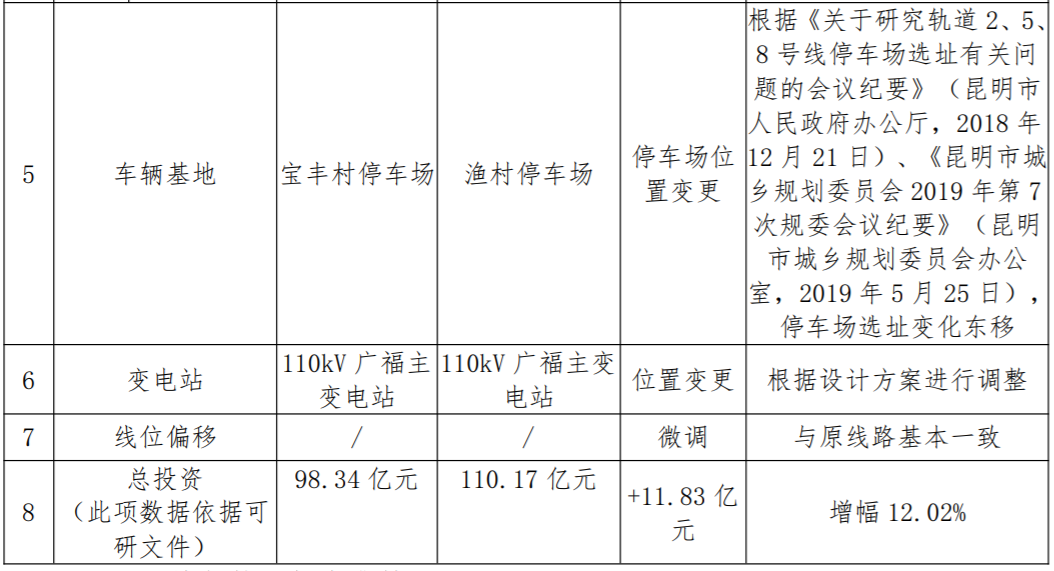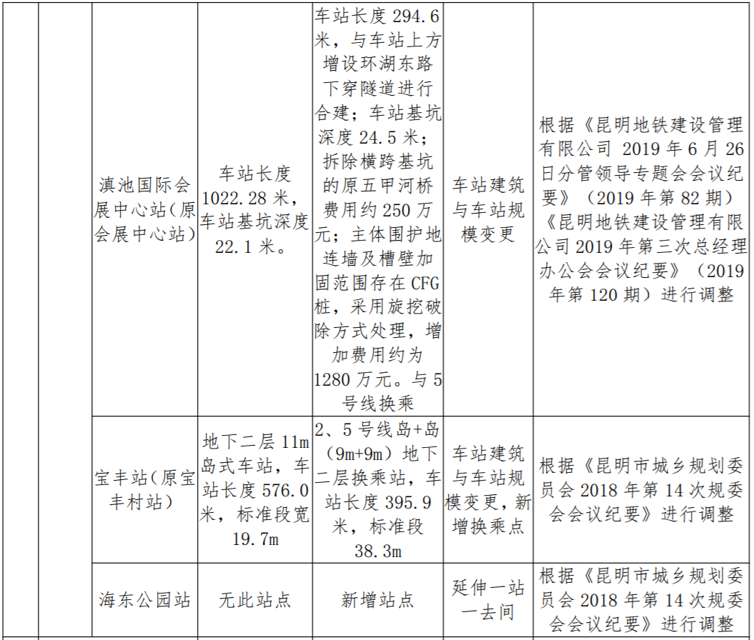 昆明地铁2号线二期项目终点由宝丰站延长至新增的海东公园站(渔村停车场),线路增加1.55公里,全长从原来的12.735公里延长至14.285公里。