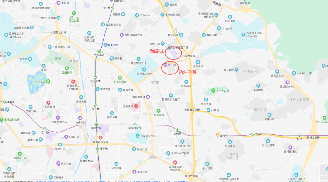 其中新迎新城、瑞鼎城仅有一街之隔,距离太近也存在相互竞争、分流客户的情况,并且两个商业中心位于白龙路,更近市区,对东市区的辐射范围实在有限。