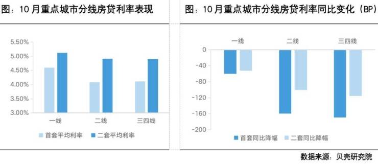 报告指出,分城市线来看,一线城市房贷利率较高,首套平均为4.60%,二套平均为5.13%,与上月持平。二线城市首套利率较低,平均为4.08%,三四线城市首套房贷利率平均为4.11%。从利率下调幅度看,三四线城市房贷利率同比降幅较大,首二套利率同比降幅分别为169BP和116BP。以首套房100万商业贷款本金,30年期等额本息还款计算,平均每月可减少月供约1036元,需偿还的利息总额减少约37万元;一线城市房贷利率同比降幅最小,首二套利率同比降幅仅60BP和52BP。