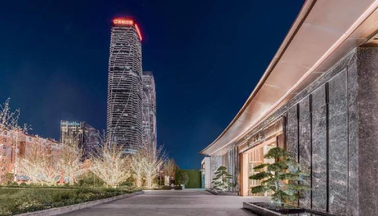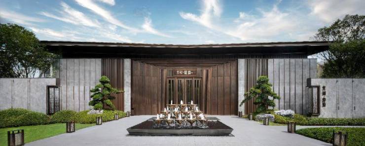 从如今已经实体呈现的约44.6x8.8米威仪名门进入,恢弘规制之下,酒店式归家礼序尽显;再往内走可见迎宾水景,紫薇花阵移步异景,塑造平和而高级的空间感;三进大象无形,安缦灵感园林中,微澜池水与休憩亭阁一动一静,塑造城市繁华中的隐奢风景。