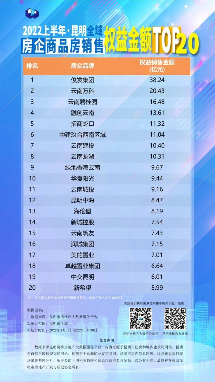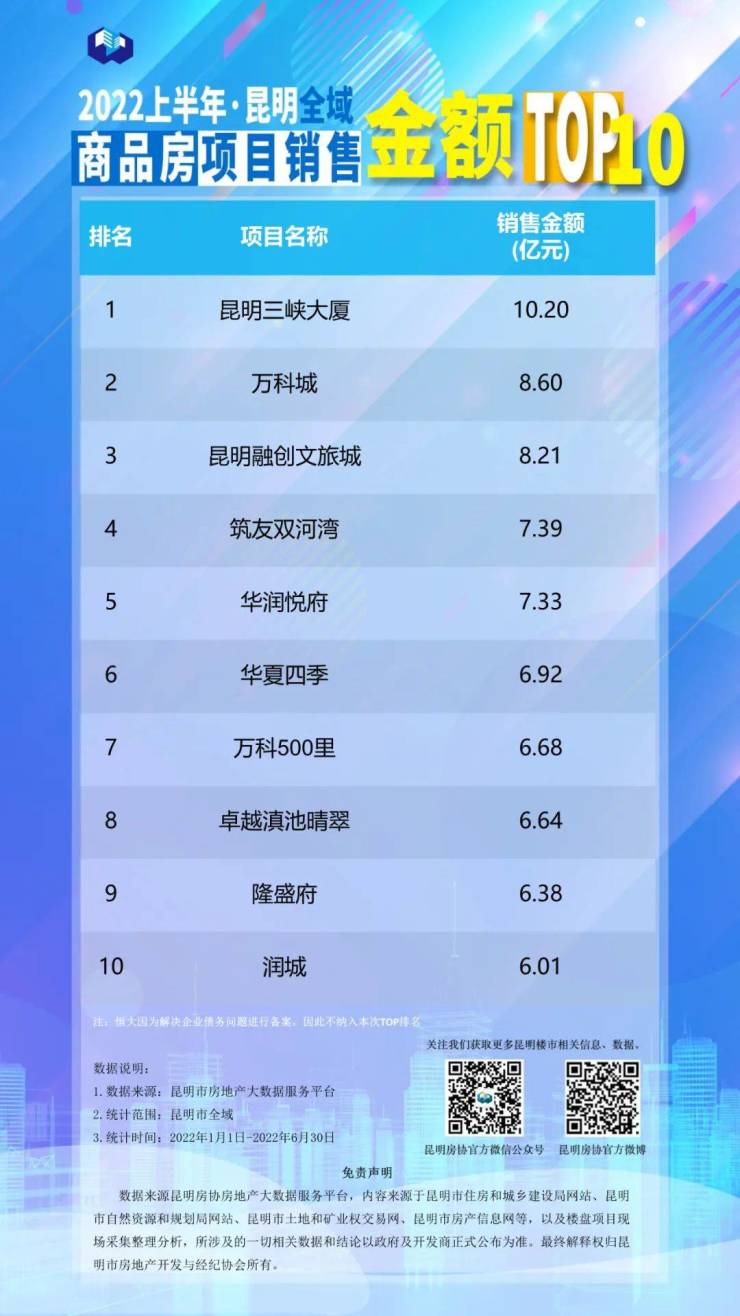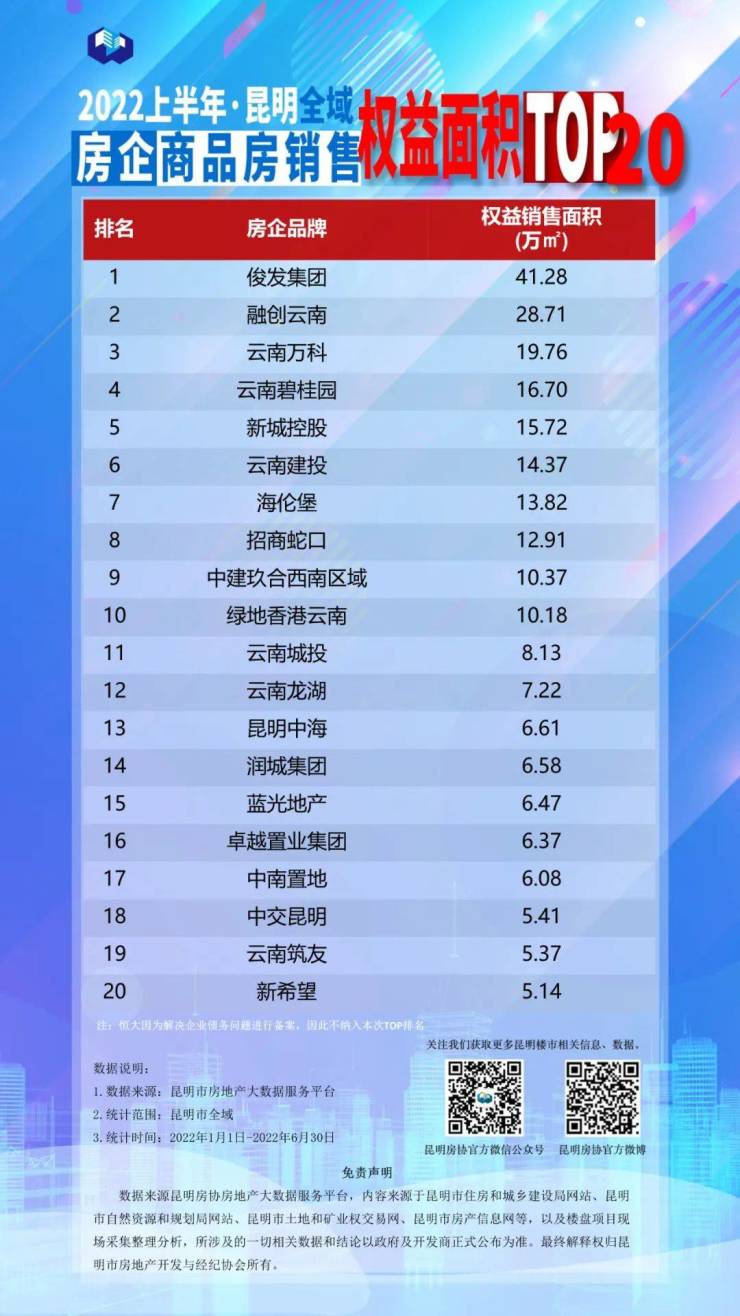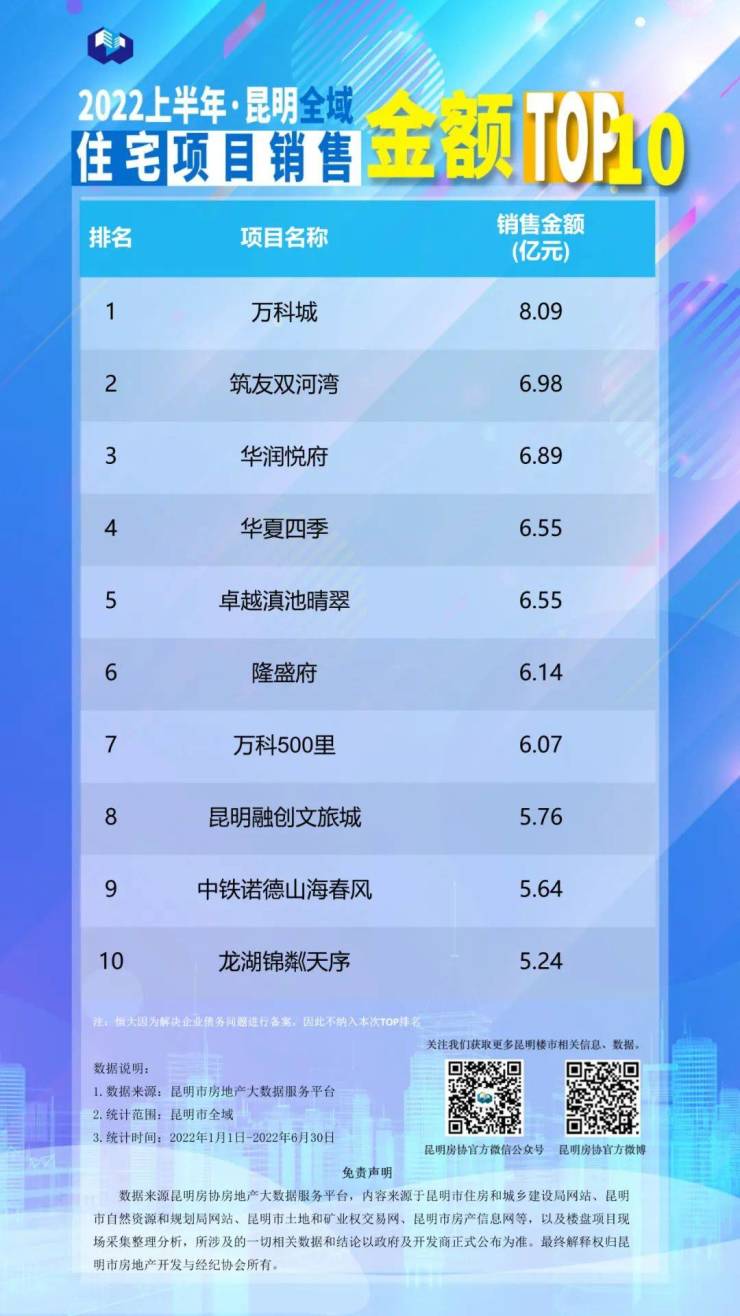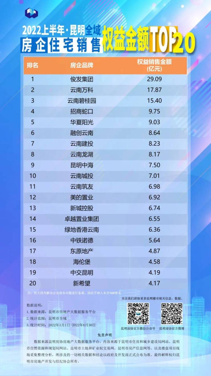 2022上半年昆明房地产行业榜单发布!