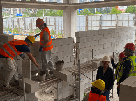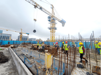 小编从楼盘工作人员处得知,目前项目工作有条不紊地开展,整体工程进度都在良好推进中。截至5月22日,项目一期4栋住宅已经封顶,基本成型,现在正在做外立面、铝合金门窗框、栏杆安装及室内砌体施工;二期4栋住宅也已结构封顶,开始屋面花架结构施工,砌体已完成3层。