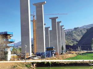 今年春节假期开启和结束时段,昆石高速都在堵车,让不少市民更加盼望昆石复线福宜高速尽早通车。1月27日,记者在阳宗镇和宜良狗街葡萄村看到,平均高度在50米左右的高大墩柱整整齐齐排列在坝子里,梁场已经预制出一部分梁板,春节过后将架设桥面。福宜高速预计2024年通车。