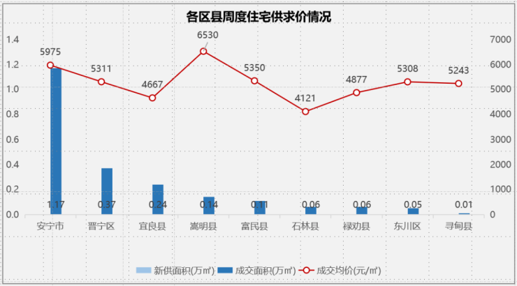 热点郊县:安宁主城翰文九万里集中备案,主导市场量升价跌;太平吾悦海悦西山以价换,带动成交量上涨;金地锦康湖山大境低密产品带动均价上涨;晋宁量价齐跌,晋宁吾悦广场和招商两项目持续以价换量;嵩明成交量持续下降,德胜空港温泉度假公园影响整体均价下降。