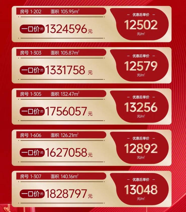 计划首推1栋,户型建面约104-143㎡,为3T6户设计,毛坯交付,按照项目最新发布的一口价房源海报,单价1.25万元/㎡起。
