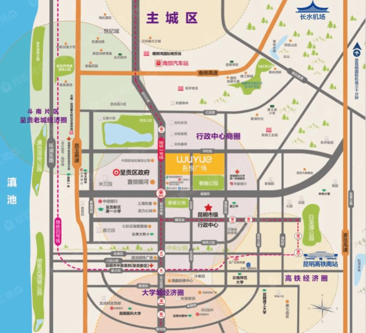 商业配套方面,项目自带大型商圈吾悦广场,周边还有万达广场、七彩云南第壹城等,吃喝玩乐完全不愁。