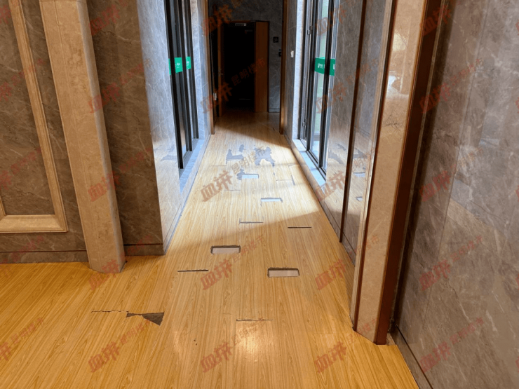 但低头看就不太行了,已经出现了破损,果然人来人往的公区还是不能用木质地板。