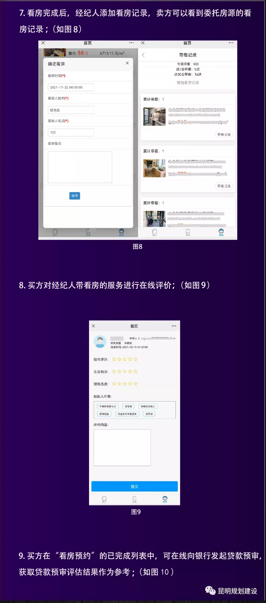 “昆明市存量房交易服务平台”为买卖双方提供在线找房、在线找中介、在线看房预约、链上验真、在线沟通等便民服务。卖方可在线委托经住建部门认证备案的纪机构和经纪人代理出售房屋,也可在线自行挂牌出售房屋;买方可在线委托经住建部门认证备案的纪机构和经纪人代理购买房屋,也可在线自行查找挂牌房屋。