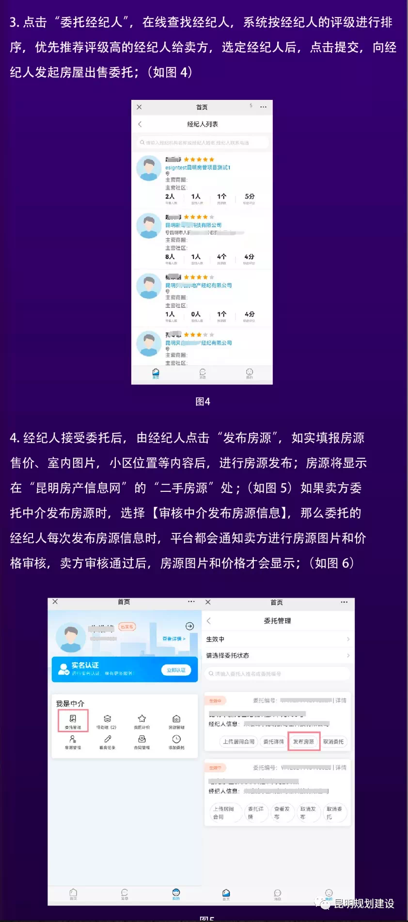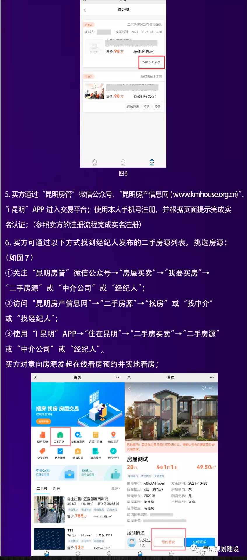 “昆明市存量房交易服务平台”挂牌房源都经过在线房源核验、经纪机构和经纪人均都经过住建部门认证备案,通过人脸识别技术,采取线上委托方式,着力打造房源“五真实”,即发布房源真实、交易主体真实、委托真实、价格真实、图片真实。