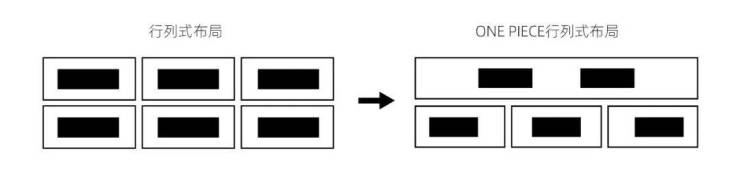 传统的行列式布局将楼栋平行排列会存在楼与楼之间的遮挡。而ONE PIECE行列式布局,将平行摆放的楼栋进行错位排列: