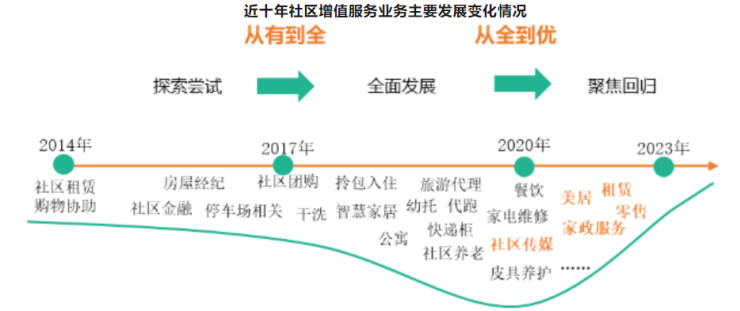 再如保利物业,2022年“完成增值服务多赛道机会挖潜向产业精耕模式的转变,聚焦到家服务、美居服务、资产服务等核心板块。”