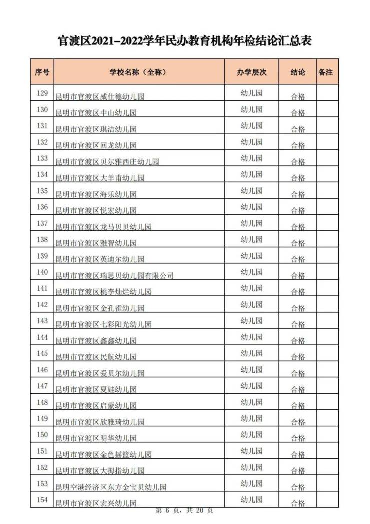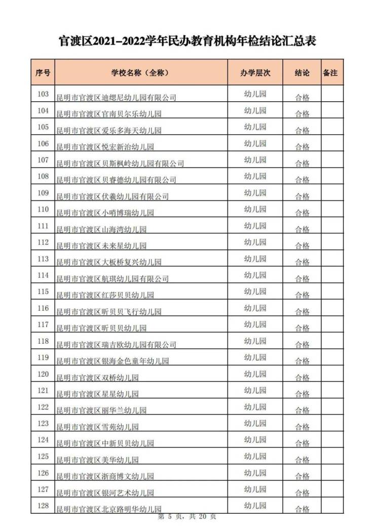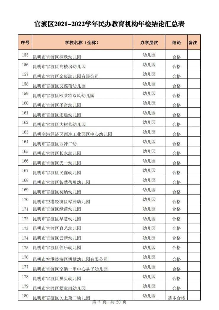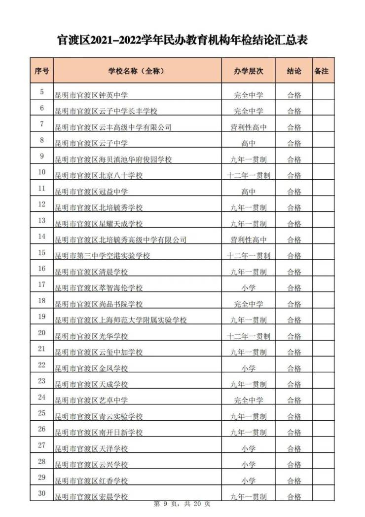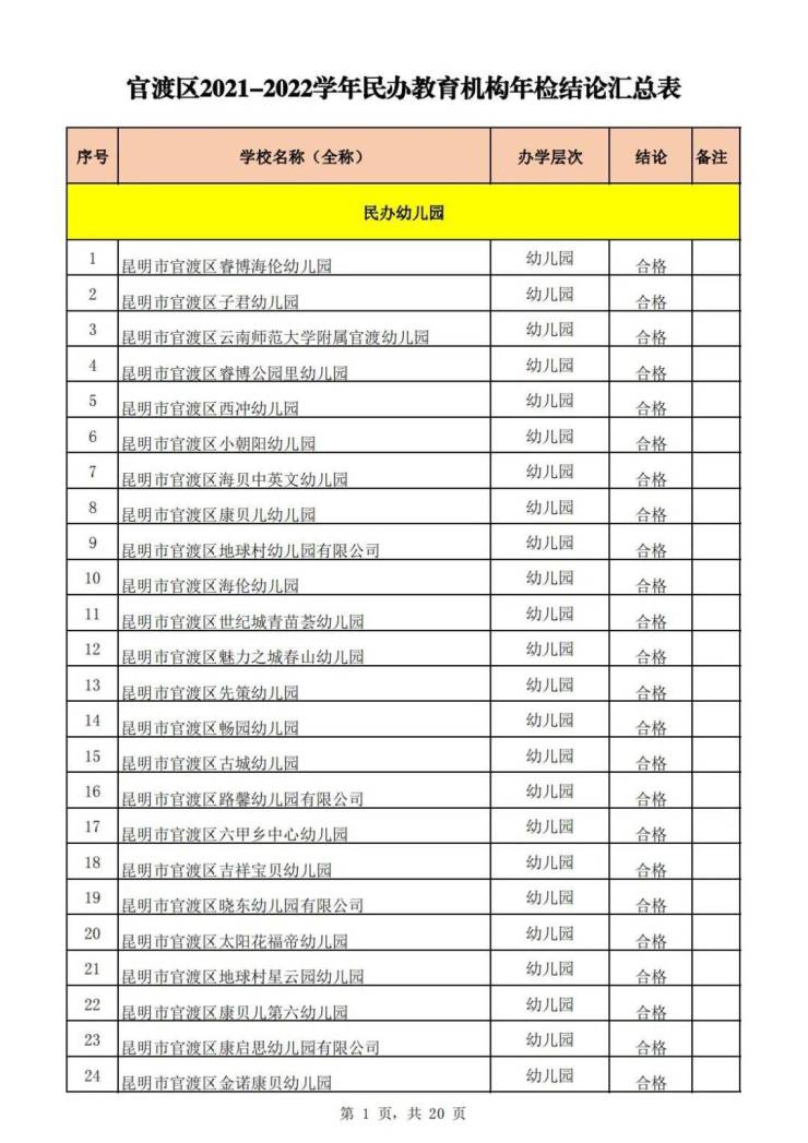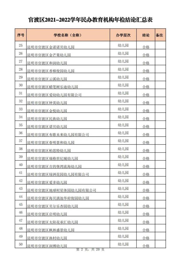 1月20日,官渡区教育体育局发布《2021—2022学年民办教育机构年检结果公示》。