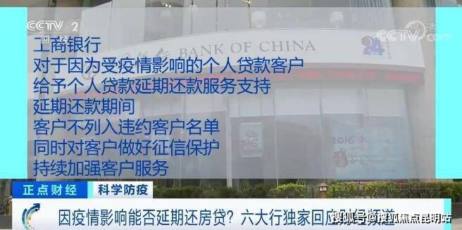 中国银行专门出台了包括延长贷款期限、延迟还本付息、设置还款优惠期在内的一揽子个人住房贷款保障政策。中国银行上海分行表示,如果客户因疫情产生逾期,可向银行发起征信异议更正相应逾期记录。中国银行吉林分行为吉林省客户设置10天还款宽限期,在宽限期内还款不计罚息、不上征信;符合条件的客户,延迟还款期限最长3个月,如果疫情延长还将适当延长期限。