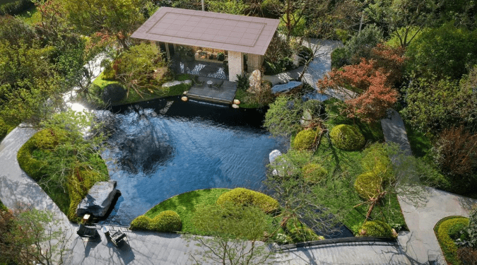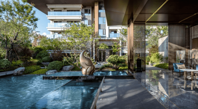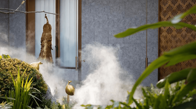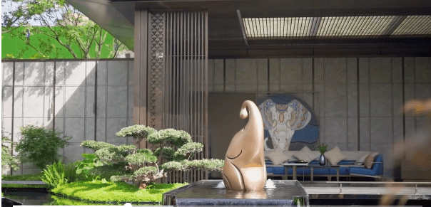 例如锦粼天序,作为双塔片区顶豪大平层,借日本京都“琉璃光院”的意境,规划一轴一心一环两区四园,移植紫薇、银杏、冬青等名贵树植,呈现“步移景异”的美景,辅以“四水归堂”的名门礼制,把春城的地域文化与四季如春的景观亮点悉数纳入庭院之中。不少业主还声称:“实景简直比效果图还好看”。