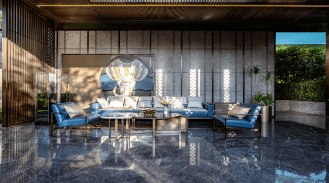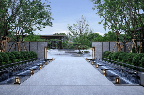 公园1903对面的龙湖·揽境项目,择以极具本地特色的“山海万象”作为园林景观主题,打造一门、两庭、三园六境主题空间。大门处宽约43.6米,赋予业主尊崇归家仪式感,如此尺度纵观全城大平层也属少见;同时依托“六境”空间,打造六种主题植物金桂、黄连木、樱花等植物,可谓推窗即见山海,内外皆是盛景!真正实现生活和园林景观有机融合,重新诠释了“度假式归家”的美好。