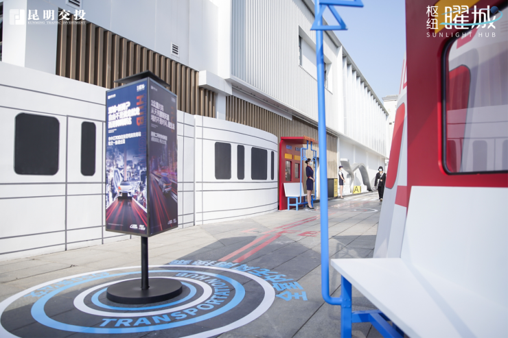 营销中心入口,以TOD轨道交通精心布设了地铁、公交、机场、高铁四大生活交通场景,逼真的火车头、沉浸式轨交体验、生活场景演绎...到场来宾在签到处需领取当日的新城游车票,每个场景都有“枢纽站务员”带你一键穿梭轨交体验,给大家呈现了一场视觉感受最直观的“折叠空间”式立体生活。