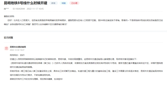宜良通地铁吗?8号线、9号线、1号线的进展?官方回复了