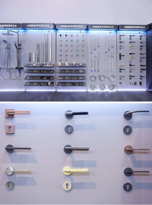 悍高全新品类家装五金,琳琅满目的家装五金展示墙,推出众多家装五金新品,以多样新型的形式展示,众多前沿产品的纷纷亮相,充分展现了悍高家装五金的产品多元化风采!