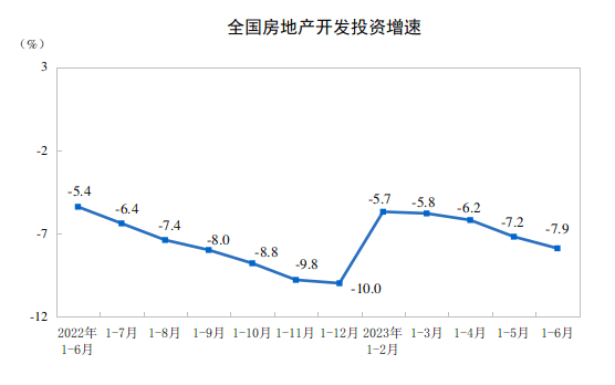 今年上半年,全国房地产开发投资58550亿元,同比下降7.9%,环比1-5月下降了0.7个百分点,成为今年以来增速最低的时间节点,相当于2022年1-9月份水平。