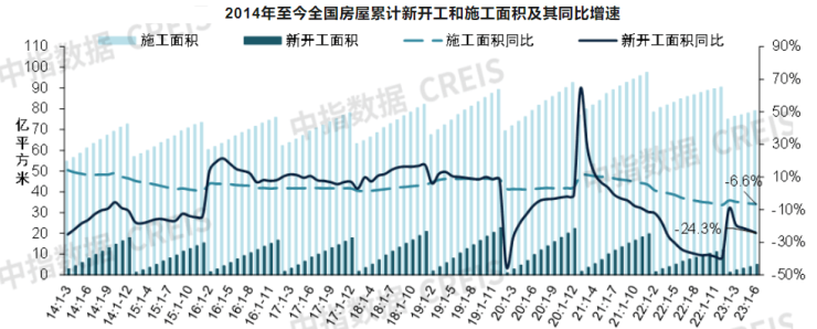 值得注意的是,上半年房屋竣工面积持续增长,但施工面积下降,且新开工面积降幅较大拖累了整体指标。